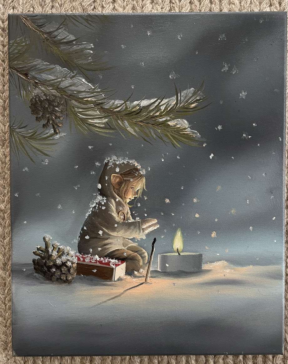 – Barnen älskade det. När det blev julafton och Nisse flyttade ut så undrade barnen vart nissen tog vägen och frågade var han bor. I mitt nyfunna intresse för målandet kom idén om att måla just det, en nisses liv i skogen, säger Josefine.