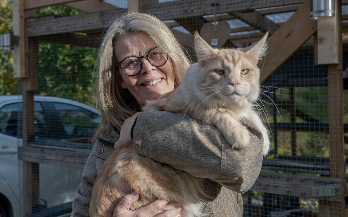 SÄLLSKAP. Lotta bor lantligt tillsammans med katterna Birk och Aska, två stora katter av rasen Maine coon. Foto: Roffe Andersson