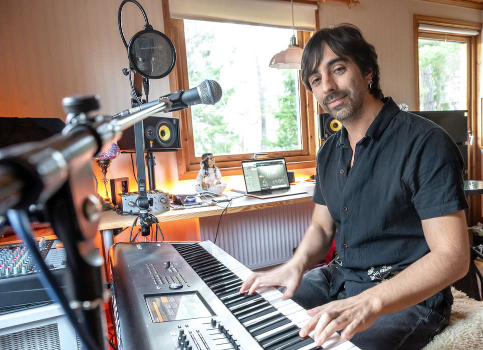 Han sitter vid sitt skrivbord och tillika arbetsplats som musiker i stugan i Brevik. Hans musik, som han släpper under sitt efternamn, CAHUAC, beskriver han själv som latinamerikansk jazz med sydamerikanska rytmer.