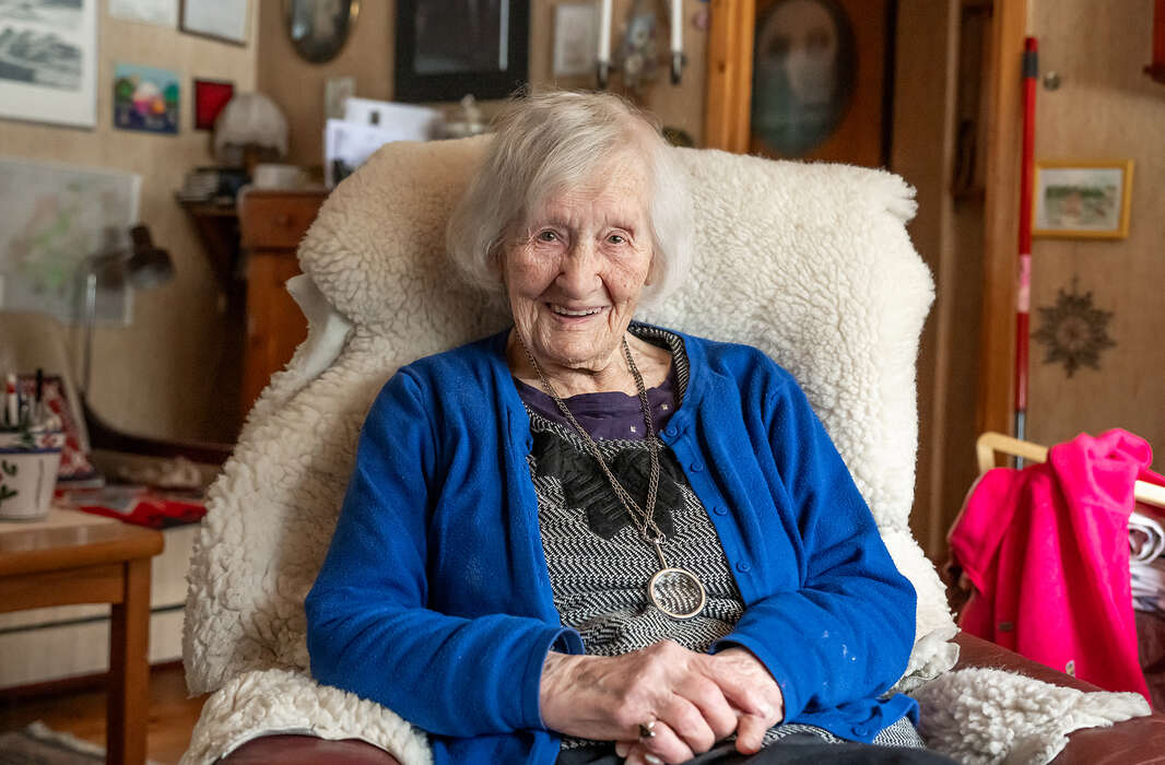 Hon beskriver sin vardag som social och hon pratar ofta med grannarna, och just samtalen och gemenskapen verkar vara en del av hemligheten till hennes pigga tillvaro.