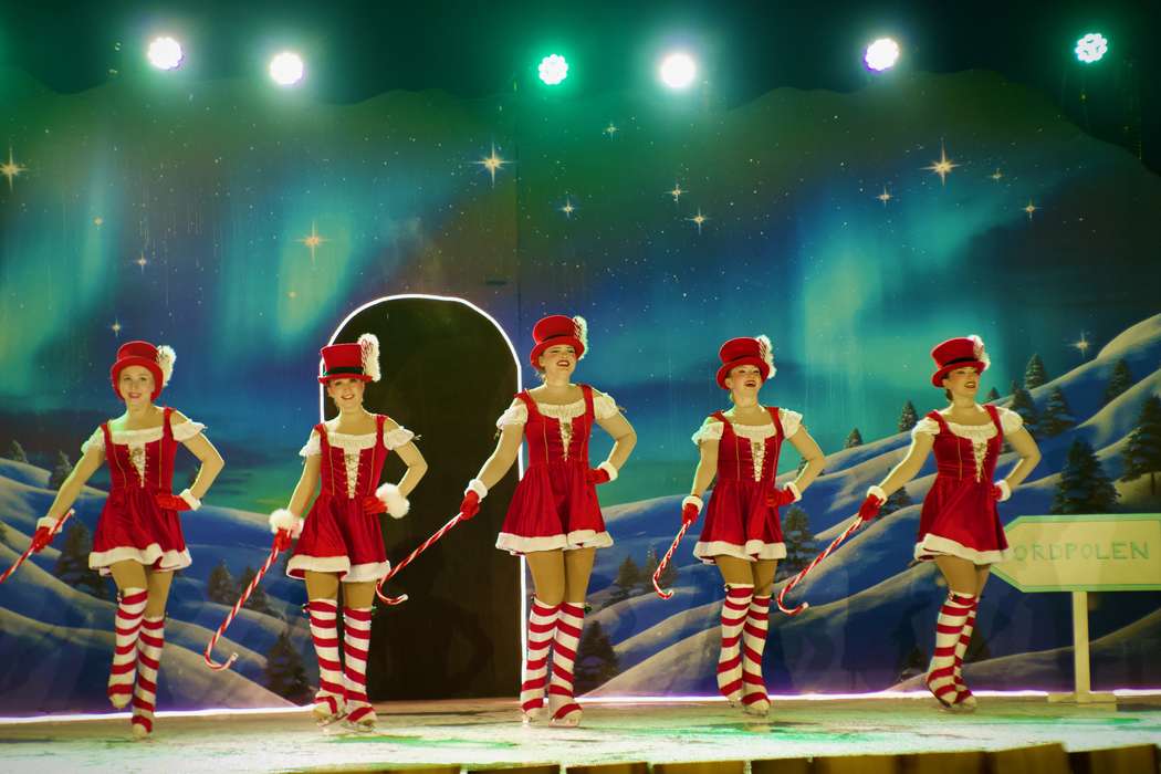 –Det är olika nummer – vi är polkagrisar, snöälvor och renar. Det är väldigt kul, det är en häftig stämning med belysningen, kostymerna och publiken.