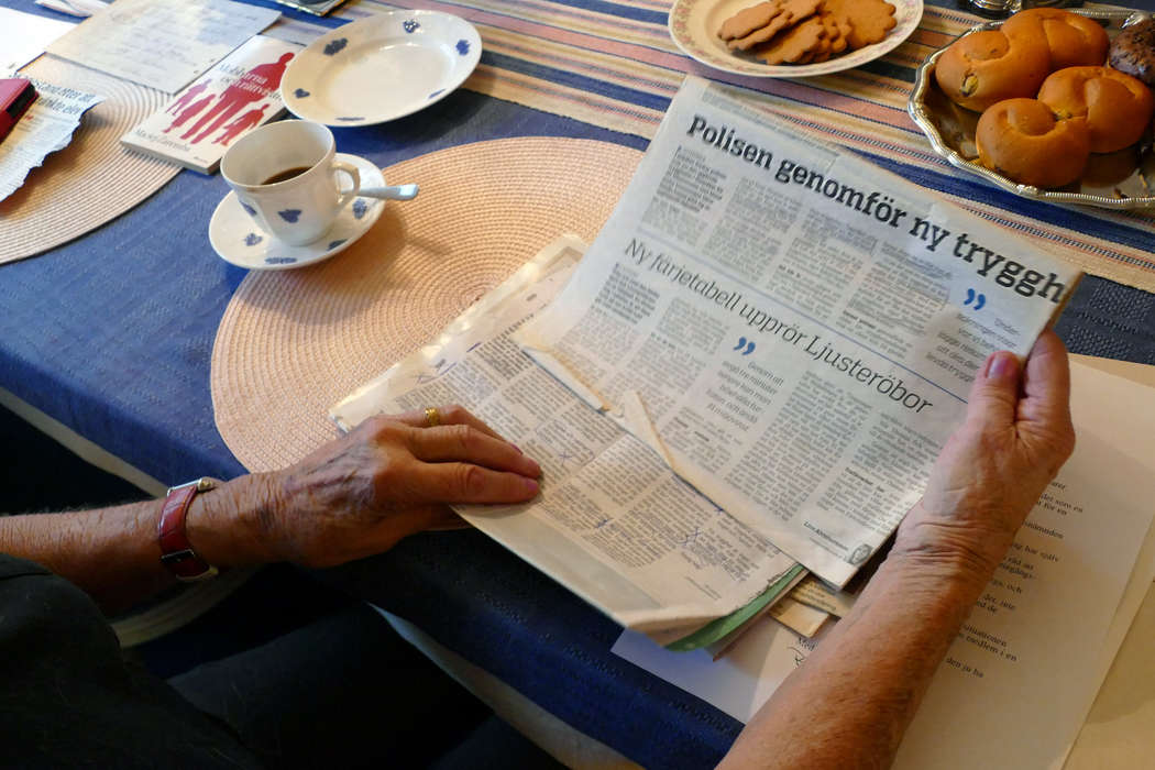 Kristina Lagerquist bläddrar bland tidningsurklippen medan hon berättar om att allt prat om kommunens trygghetsarbete provocerar henne. Efter att ha jobbat som mellanstadie- och speciallärare i över 25 år inom Österåkers kommun blev Kristina utsatt för mobbning, både från några föräldrar och från skolledningen.