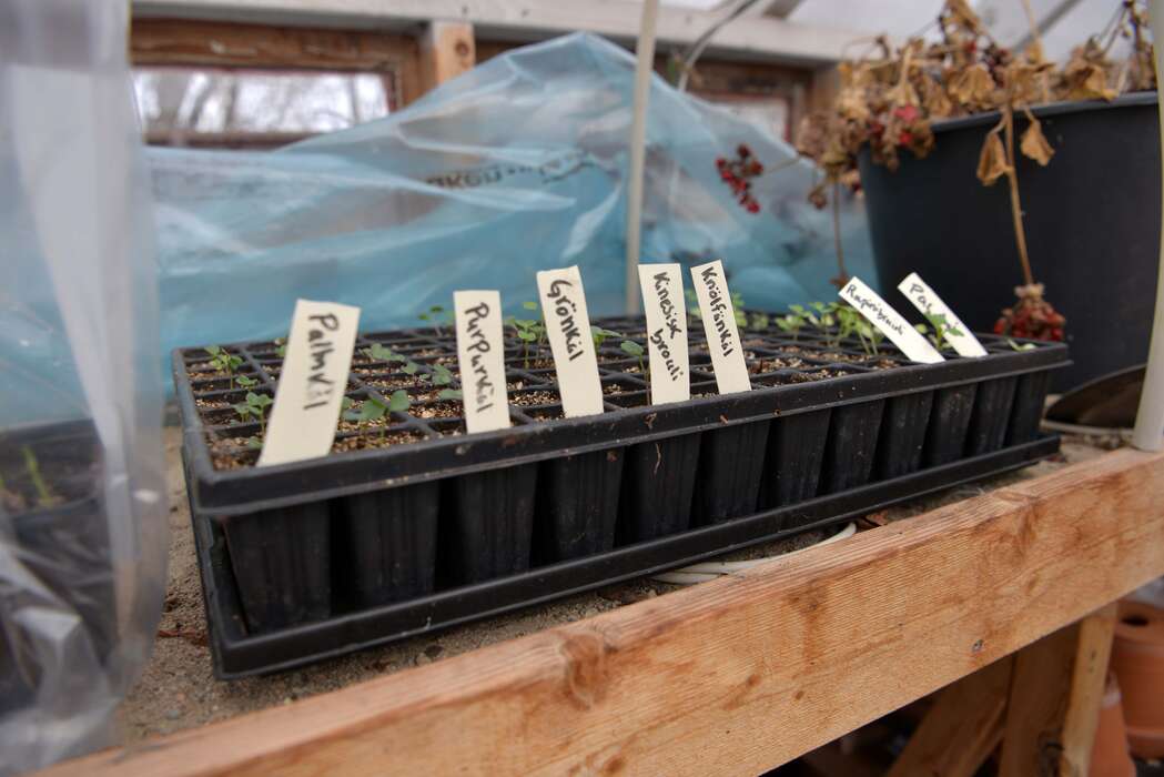 – Man behöver inte förså inne utan det är bättre att förså i krukor eller små behållare, som vindruvsförpackningar. Allra helst ska dessa stå i ett växthus, men det funkar också i en genomskinlig plastback. Får det försådda stå ute under soliga dagar kommer plantorna att växa i sin egen takt innan de planteras ut, förklarar Sofia.