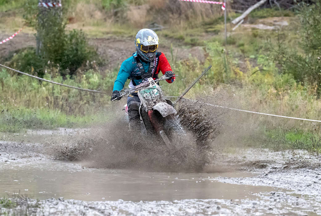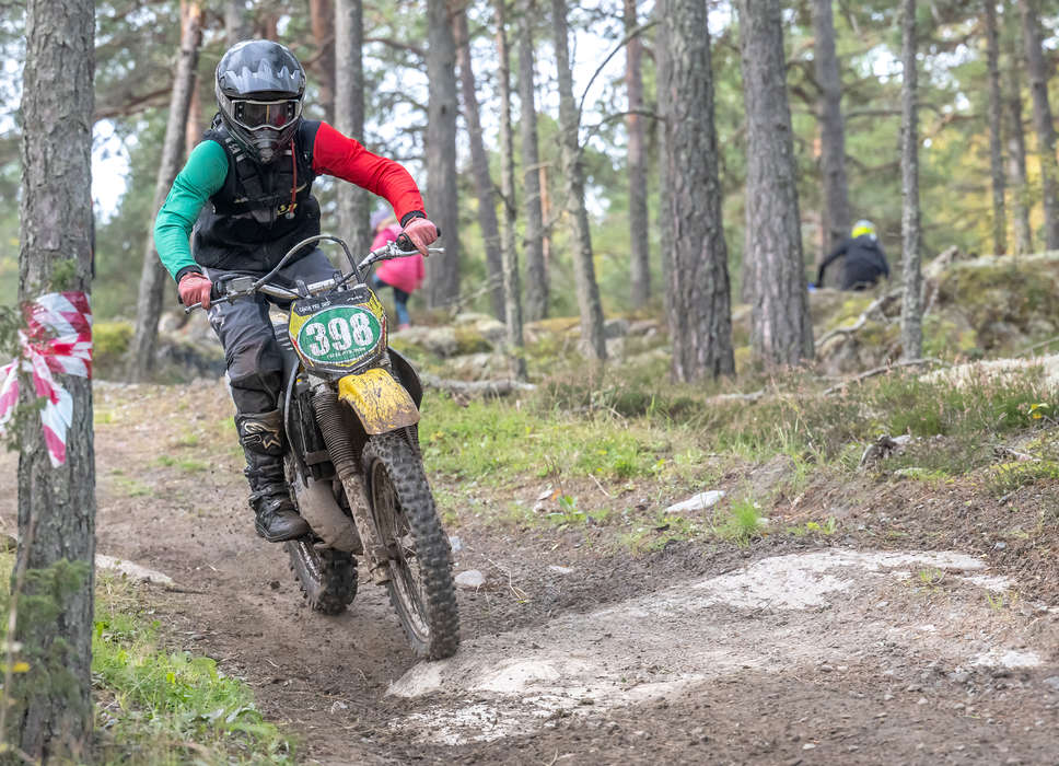 FINÅKNING. På en nästan 30 år gammal endurohoj kunde Felix Nyström köra hem totalsegern i juniorklassen av Forsell motor cup. Foto: Roffe Andersson